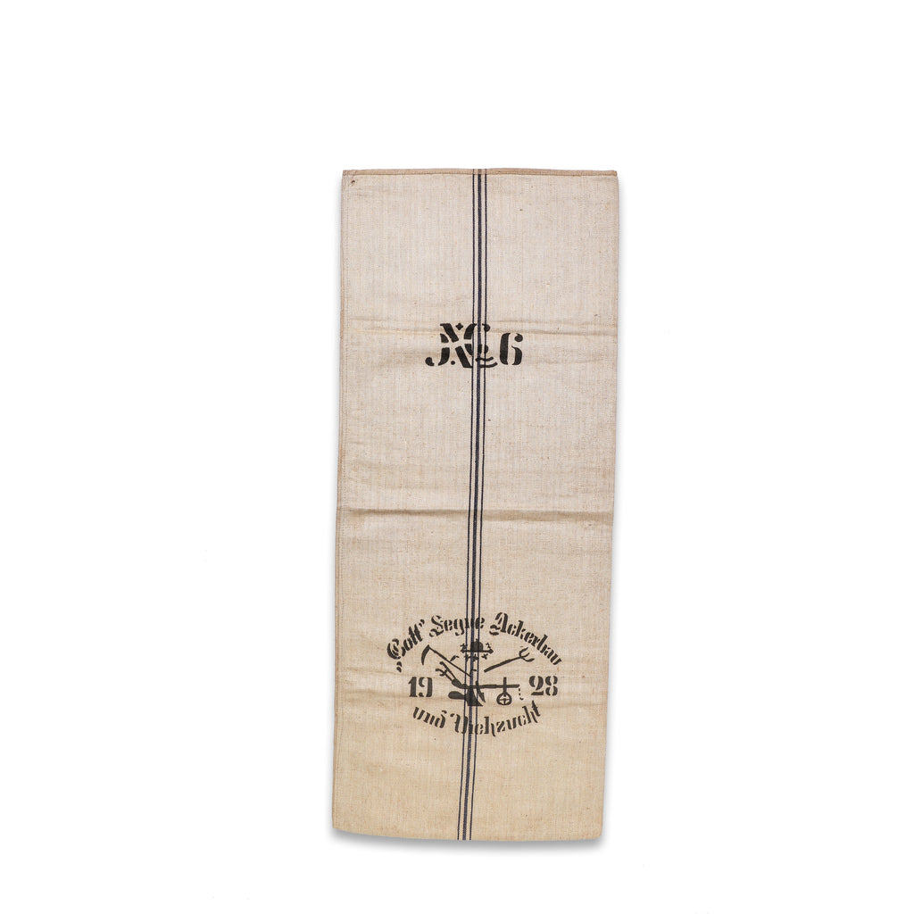 This antique German grain sack from 1928 is a prized piece from a private collection, is made of heavy-weight organic hemp linen. The warm dark linen unique detailing showcase its historical charm, with signs of time and use—100% unique and intriguing! Perfect for collectors or a design project.