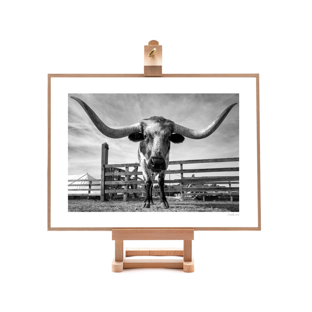 Archival pigment print behind glass with gummed kraft paper taped to heavy chipboard protected with UV conservation glass and an acid free barrier. A French framing technique makes for the perfect bookshelf or desk decoration- Easel included!