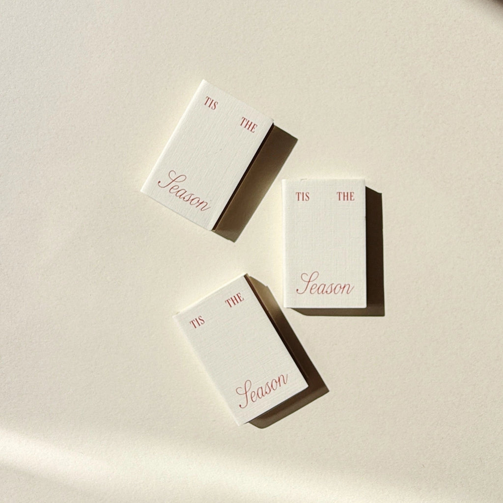 2.25" x 1.38" Matchbox * Approximately 20 Matchsticks * Natural Linen Matchbox * Red Foil *