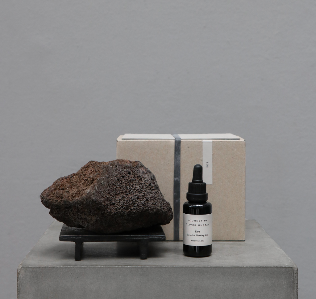 The potpourri consists of: one Icelandic lava stone and essential oil (30 ml) on iron pedestal.