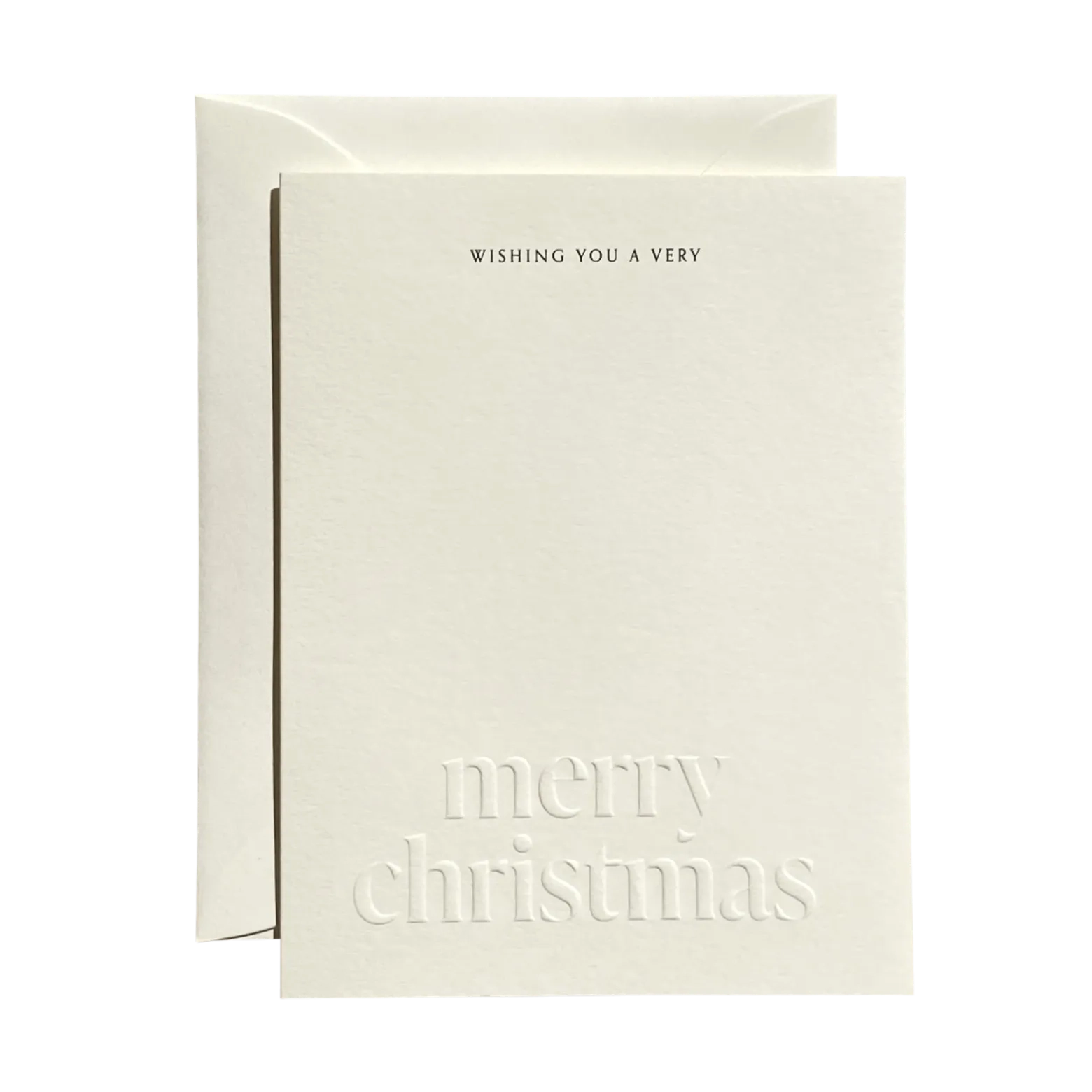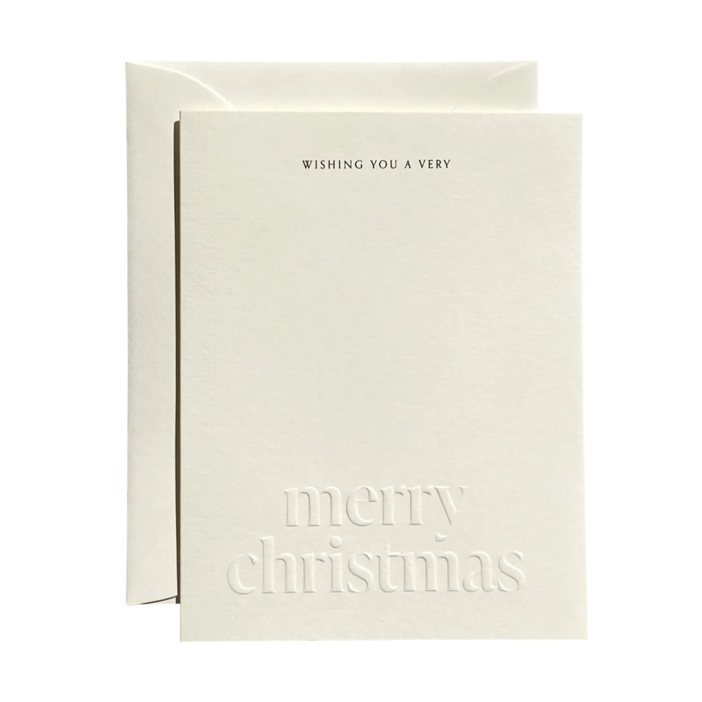 * A2 Folded * "Merry Christmas" * Cream Cover Stock * Blind Emboss + Digitally Printed * Natural Envelope * Blank interior * Made in Los Angeles