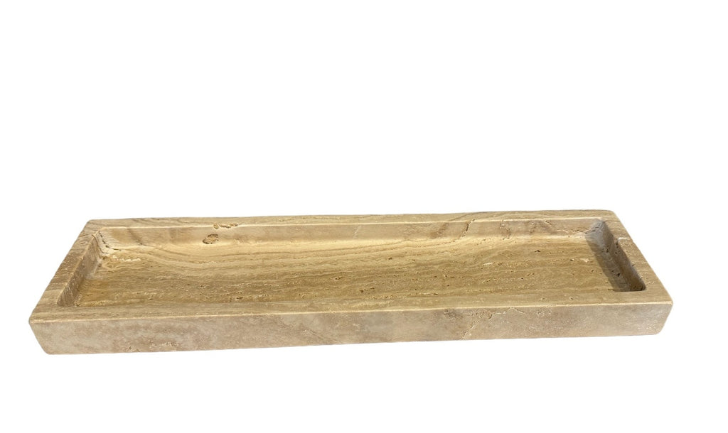 Square tray is crafted using natural stone travertine by human hands. Elegant in bathrooms and office spaces alike. As a decorative or organizer, it is a magnificent object on its own. All stone has variations, much like a fingerprint, each piece is uniquely its own.