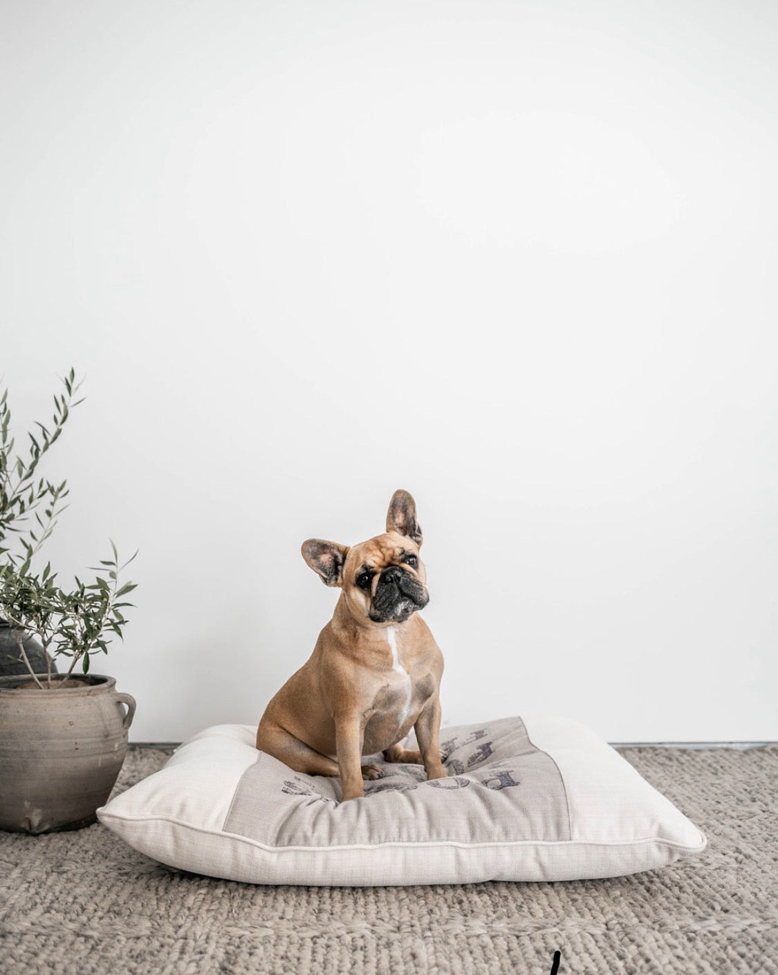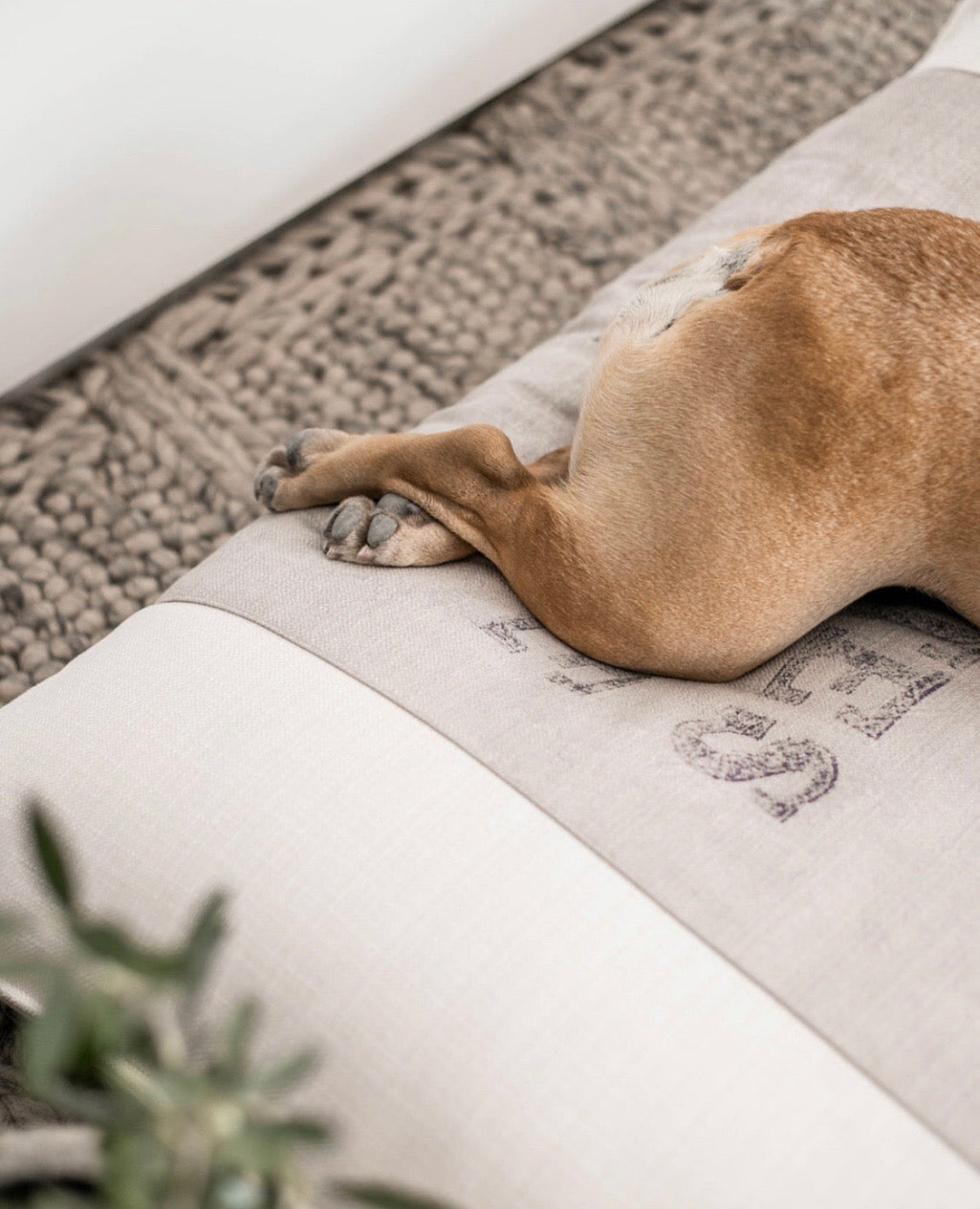 Our best-selling Tucker Dog Beds are BACK! Named after my own Tucker and inspired by my curation of Antique German Grain Sacks, I’ve designed these custom dog beds with beauty, comfort & practicality in mind. Each bed is an exact replica of a piece in my collection and created with fine high performance linen specially treated with water-resistant technology. Only the best for our furry family members!