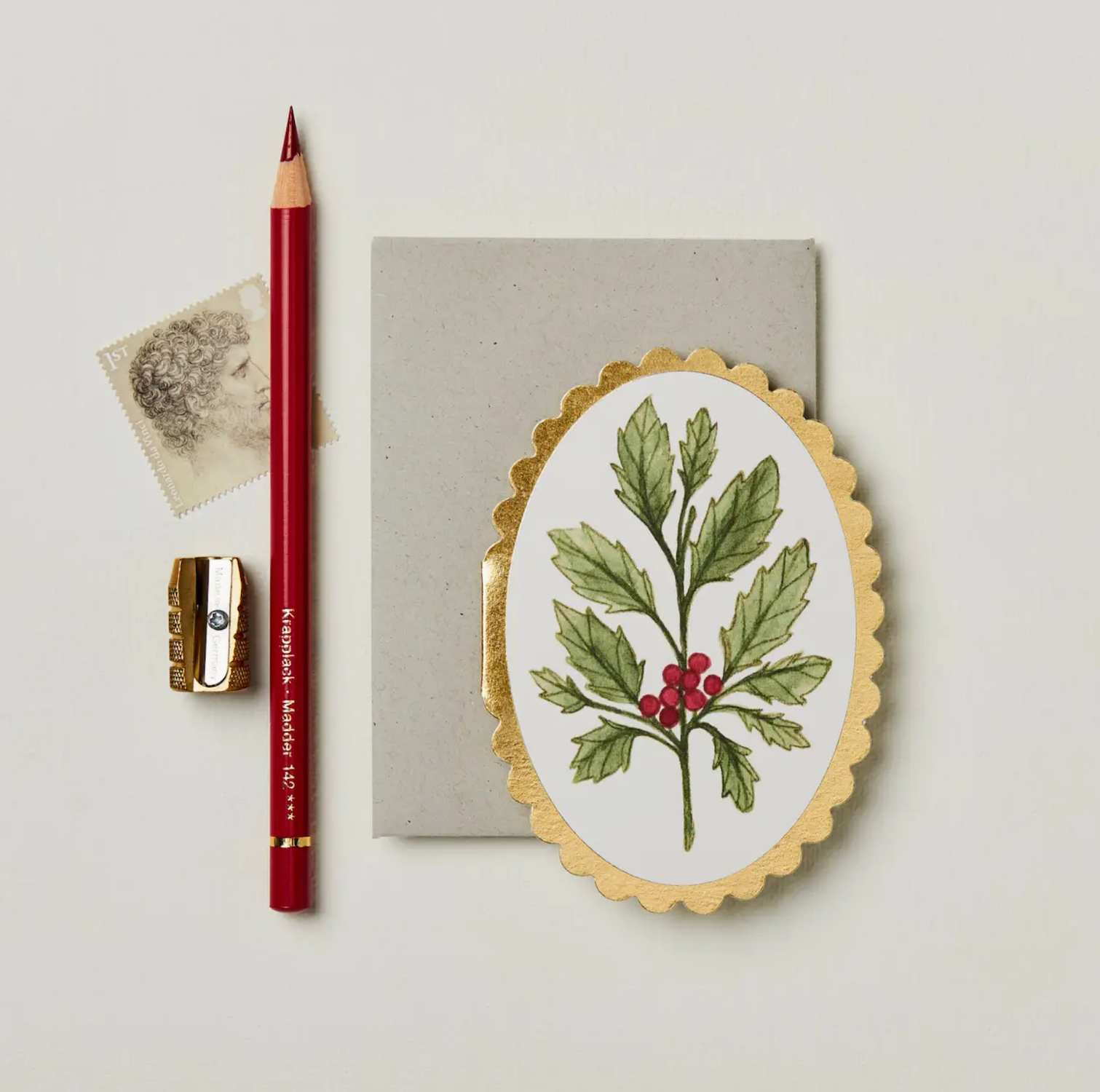 Our mini card series features playful illustrations with gold foil scalloped edges.