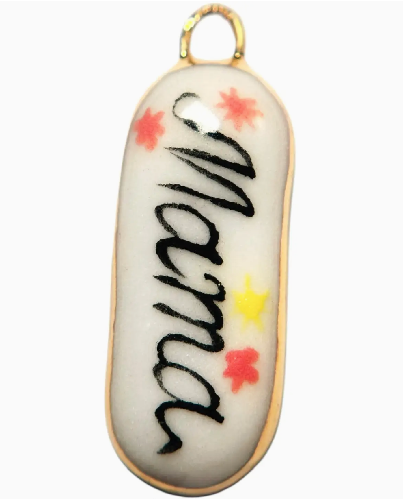 These Shá Parlé hand-painted porcelain charms with 22K gold luster accent are designed to express your story, your mood, or just your vibe for the day. Each piece is crafted with intention, personality, and a wink of playfulness.