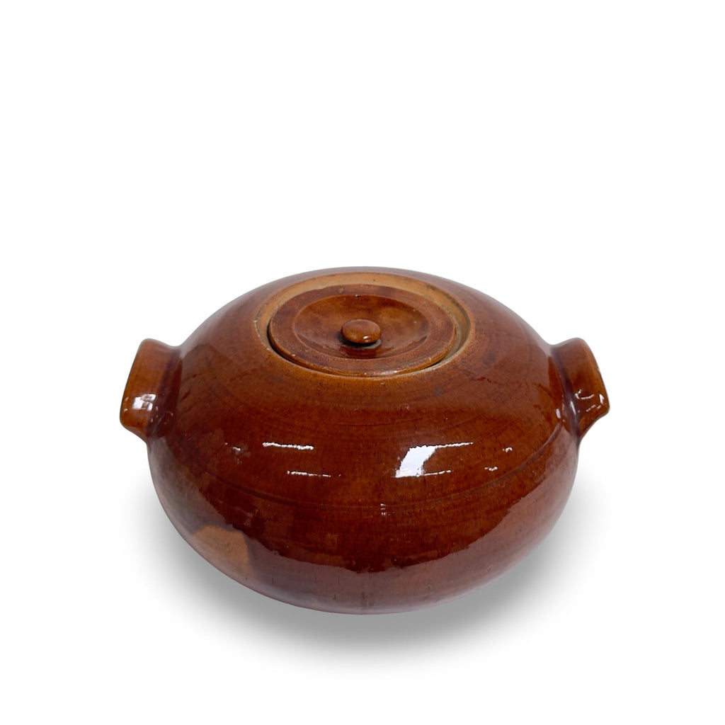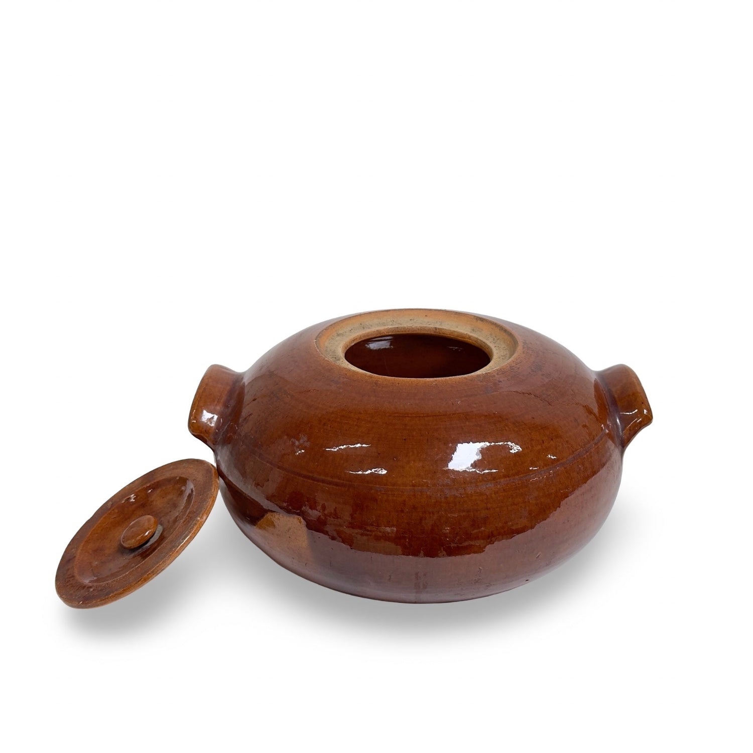 This unique and beautifully designed Antique French Pot was traditionally used in French kitchens. Its earthy tones and natural texture showcase a beautifully aged patina, making it both a functional piece and a charming decorative accent.