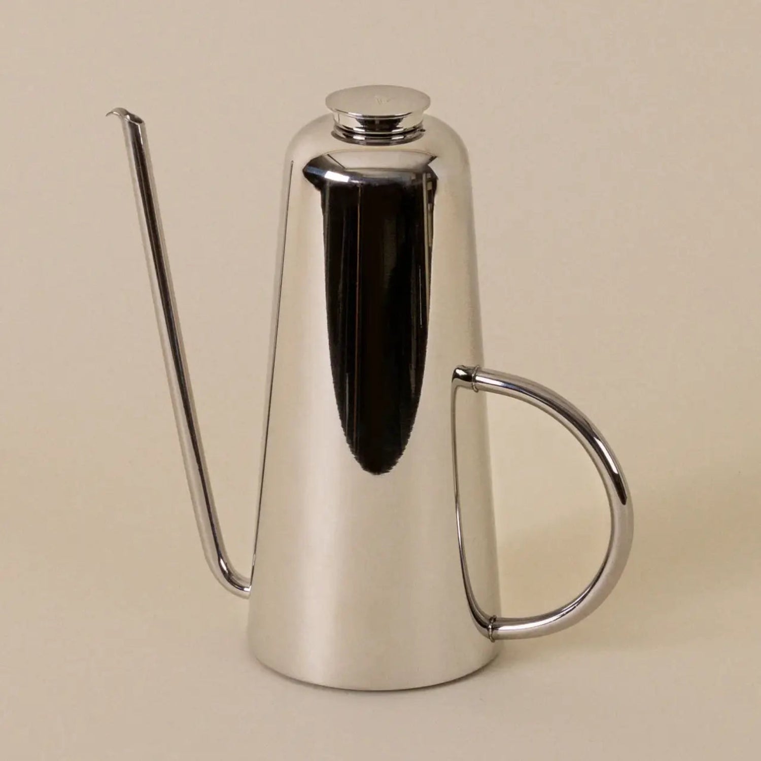 Dripless Oil Can features an elongated spout that ensures an even and steady pour. The tip of the spout is hand-sharpened to cut through the oil's stream, reducing drips. Made of stainless steel, our Oil Can's refined silhouette protects against light and debris to keep the oil fresh.