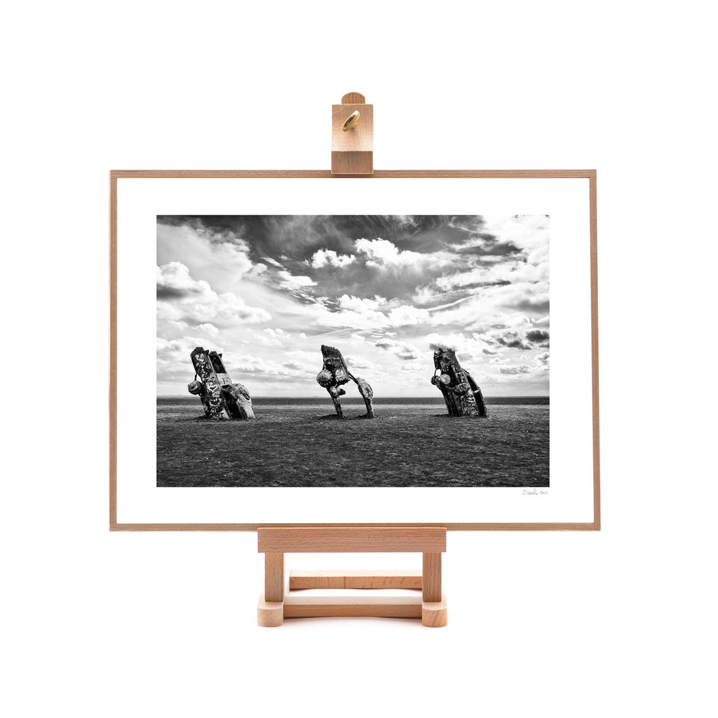 Archival pigment print behind glass with gummed kraft paper taped to heavy chipboard protected with UV conservation glass and an acid free barrier. A French framing technique makes for the perfect bookshelf or desk decoration- Easel included!