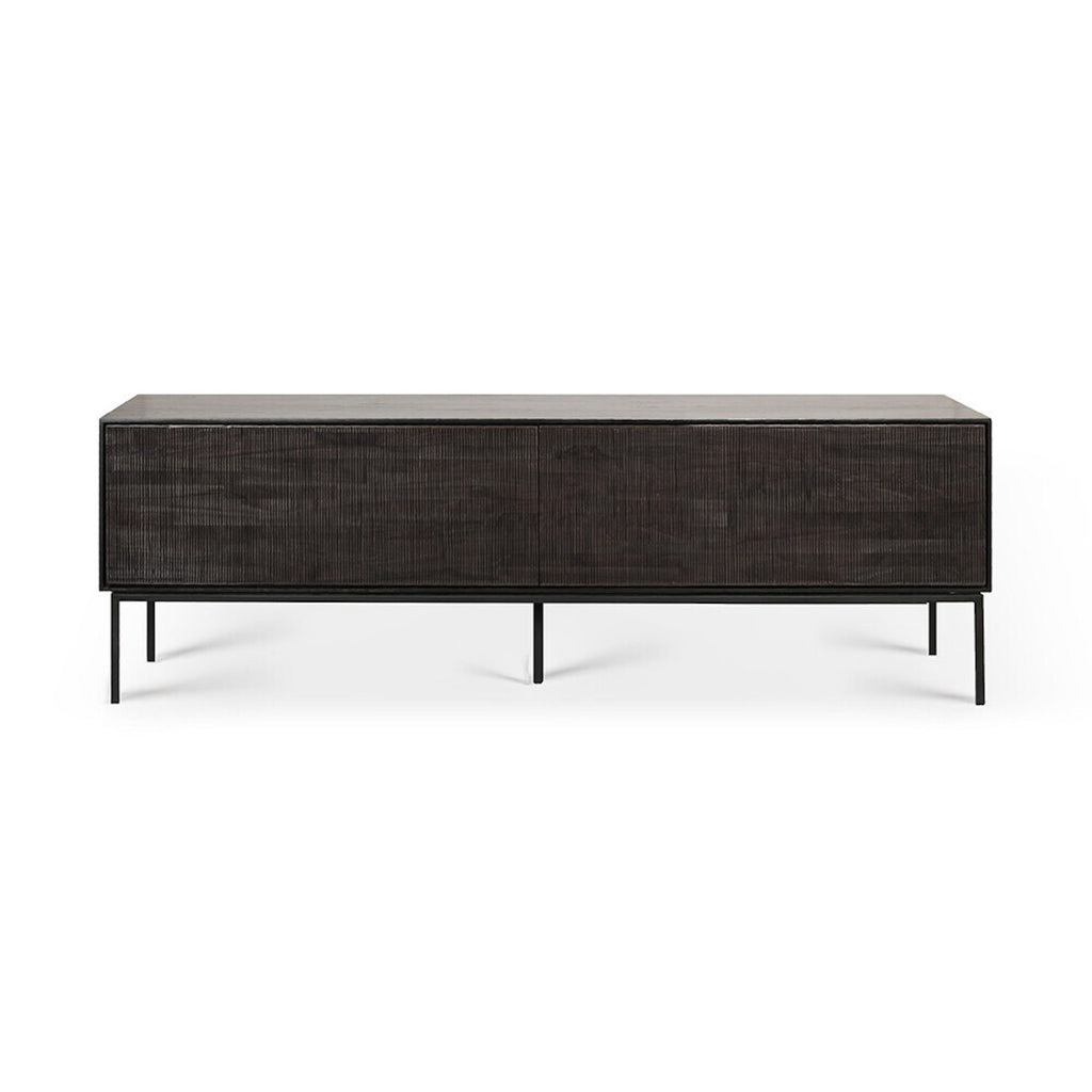 The Grooves TV cupboard in solid teak is soulful to say the least. Every single line you see is hand carved, making each piece truly unique. Small imperfections are part of the story, even more so: they enhance Grooves' character. The result is a slightly different surface every time, each with its own rhythm and dynamics. The beautiful dark tinted teak continues on the inside, where shelves and drawers will hold your most cherished objects.